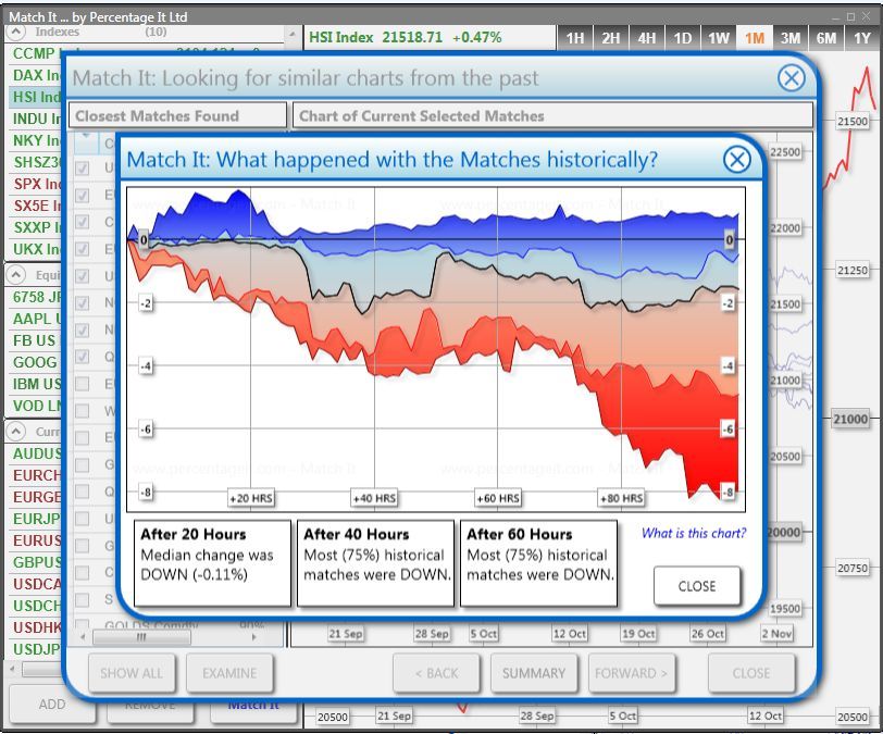 Percentage It has developed two statistical analysis based software applications, Match It, which looks to see when the market has looked similar in the past and provides analysis based on past matches, and Watch It which monitors the market for statistically unusual events occurring and reports back as they occur.
